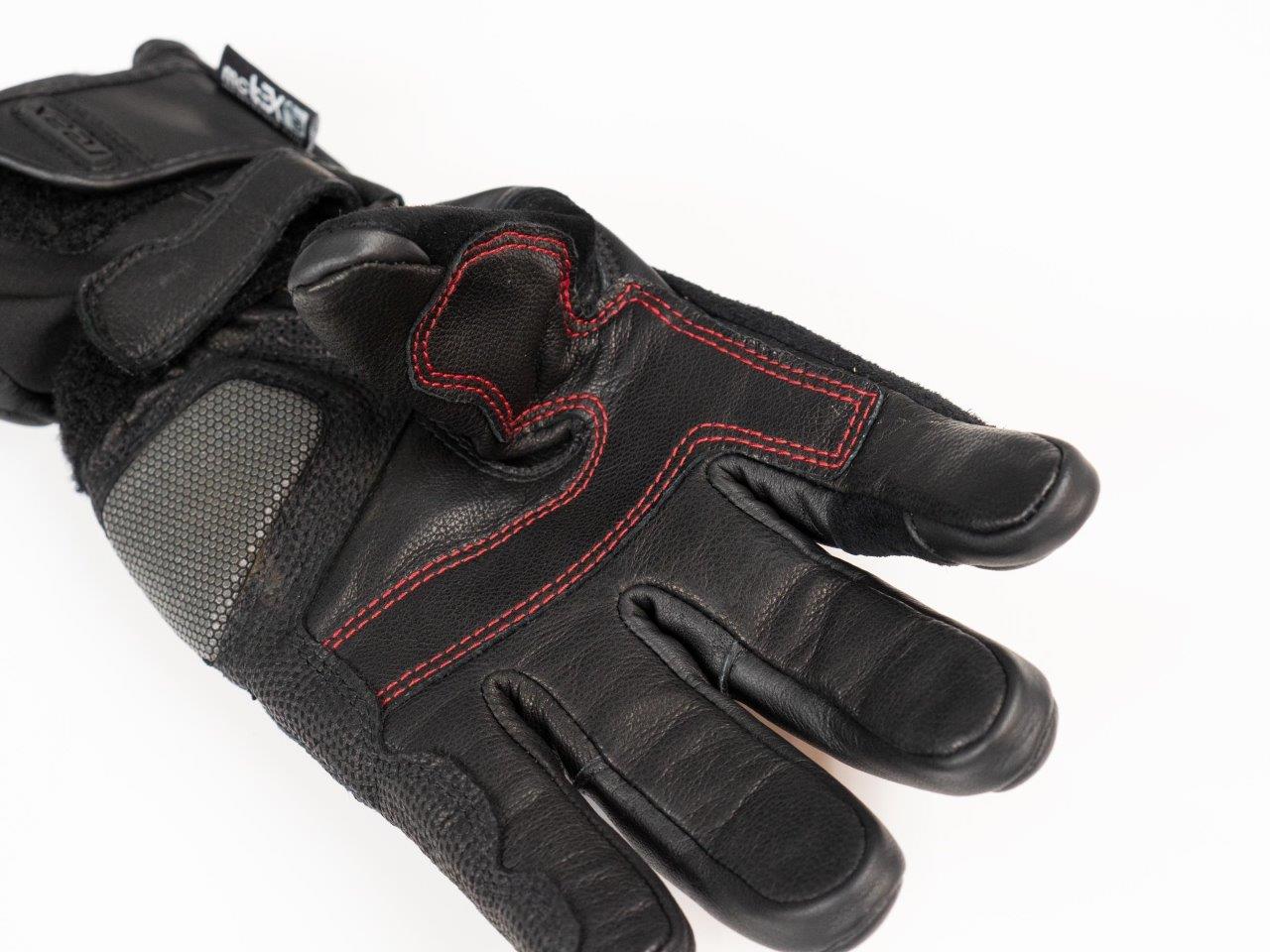 The primary material the gloves are built from is cowhide leather, 0.8 – 0.9 mm, thick enough to be protective, without being too stiff. All seams in the gloves are double stitched, and the stitching in them is even throughout.