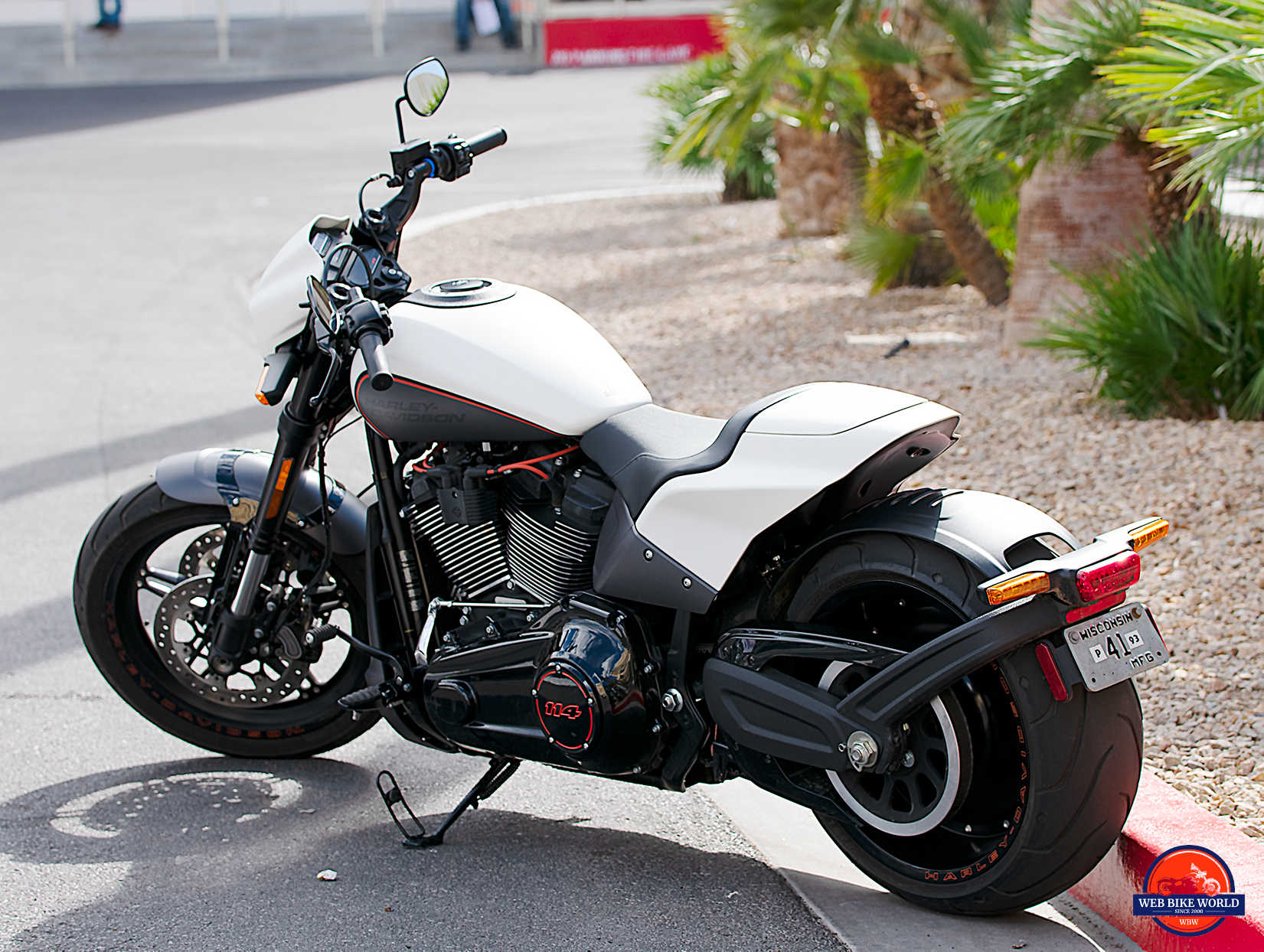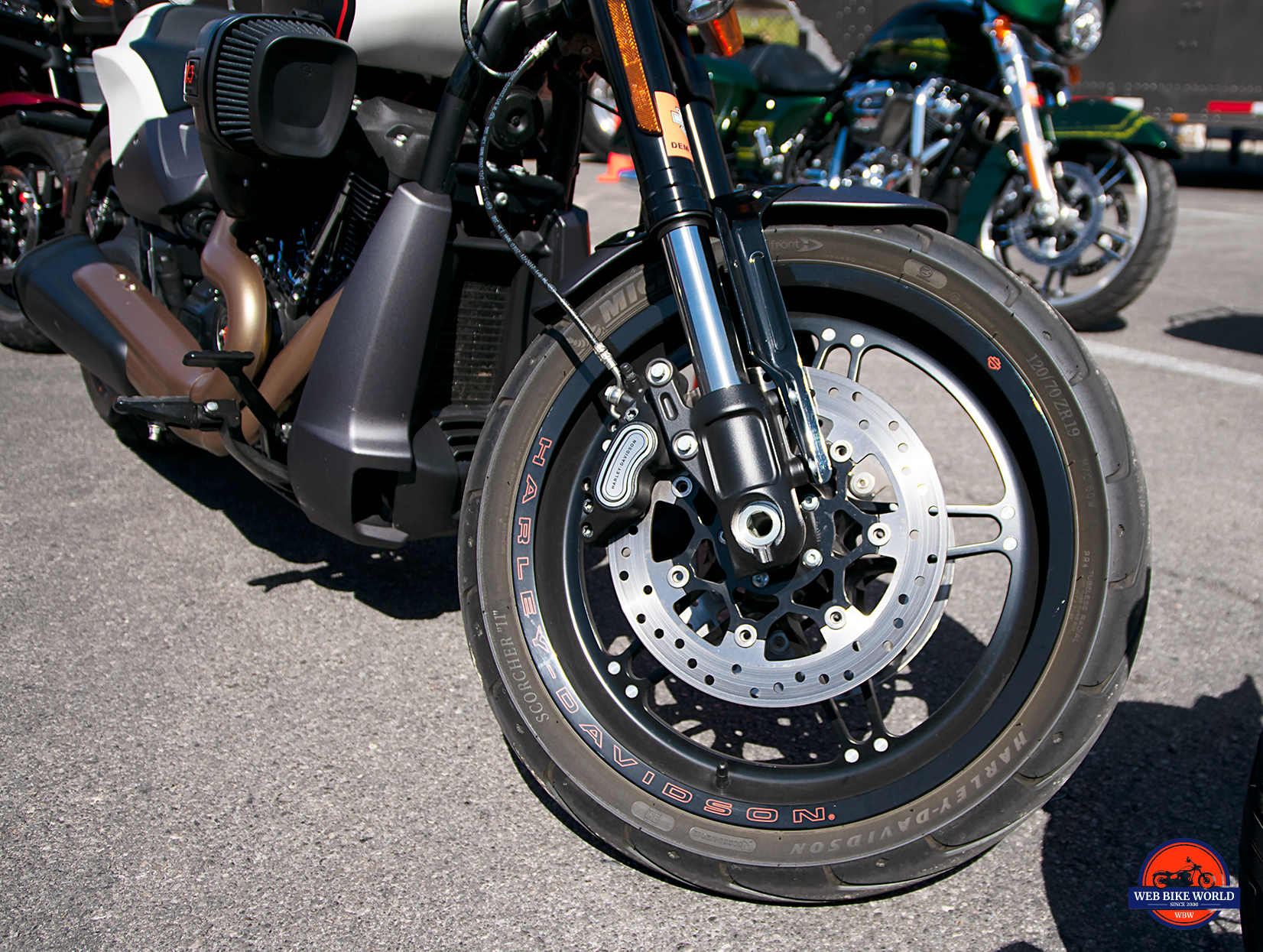 The numbers from Harley say the max lean angle is just over 32 degrees on either side meaning it should corner slightly better than the Fat Bob.