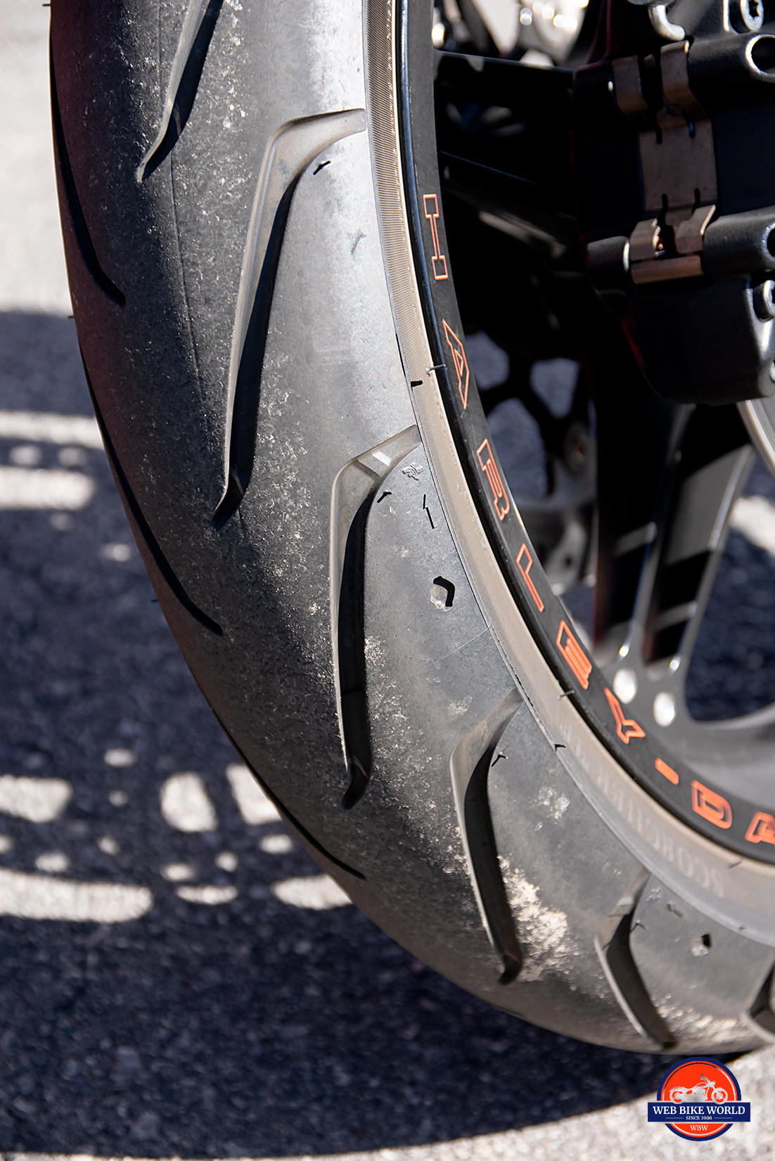 The Michelin Scorcher tires stuck like glue to the road and made me happy with their performance. The rear 240mm tire is a real beauty with how wide it is. It gave lots of confidence in the tight corners. I wanted to use every inch of the sidewalls in each turn.