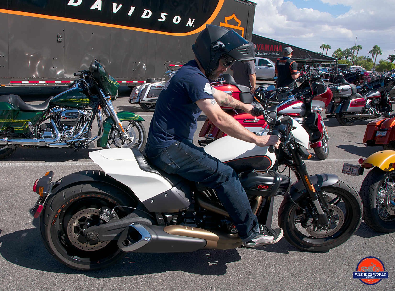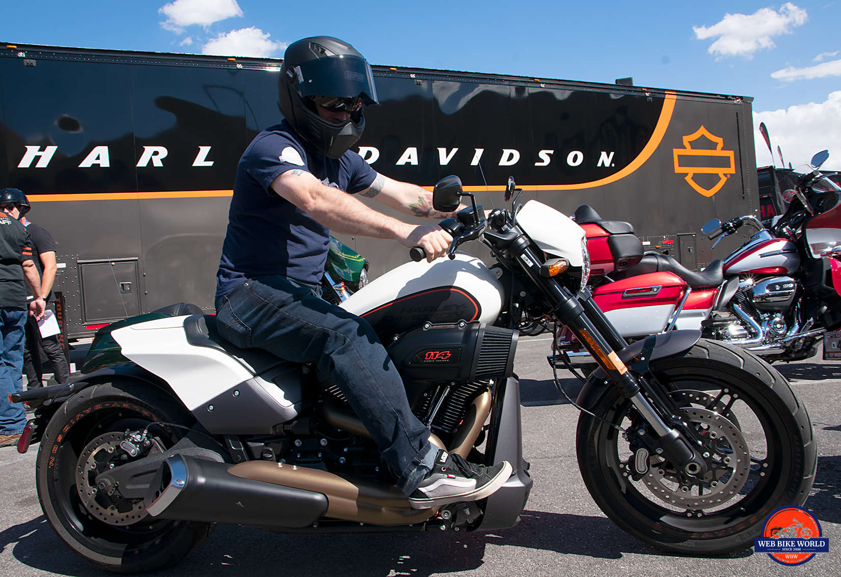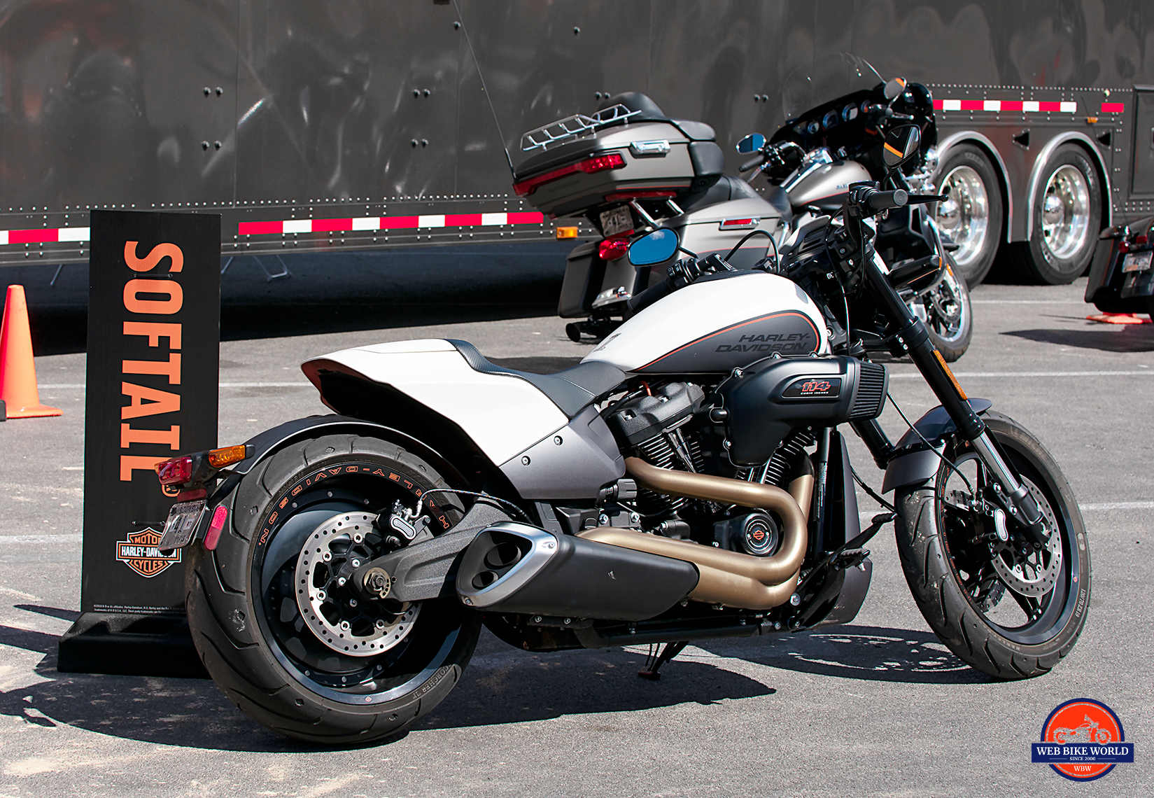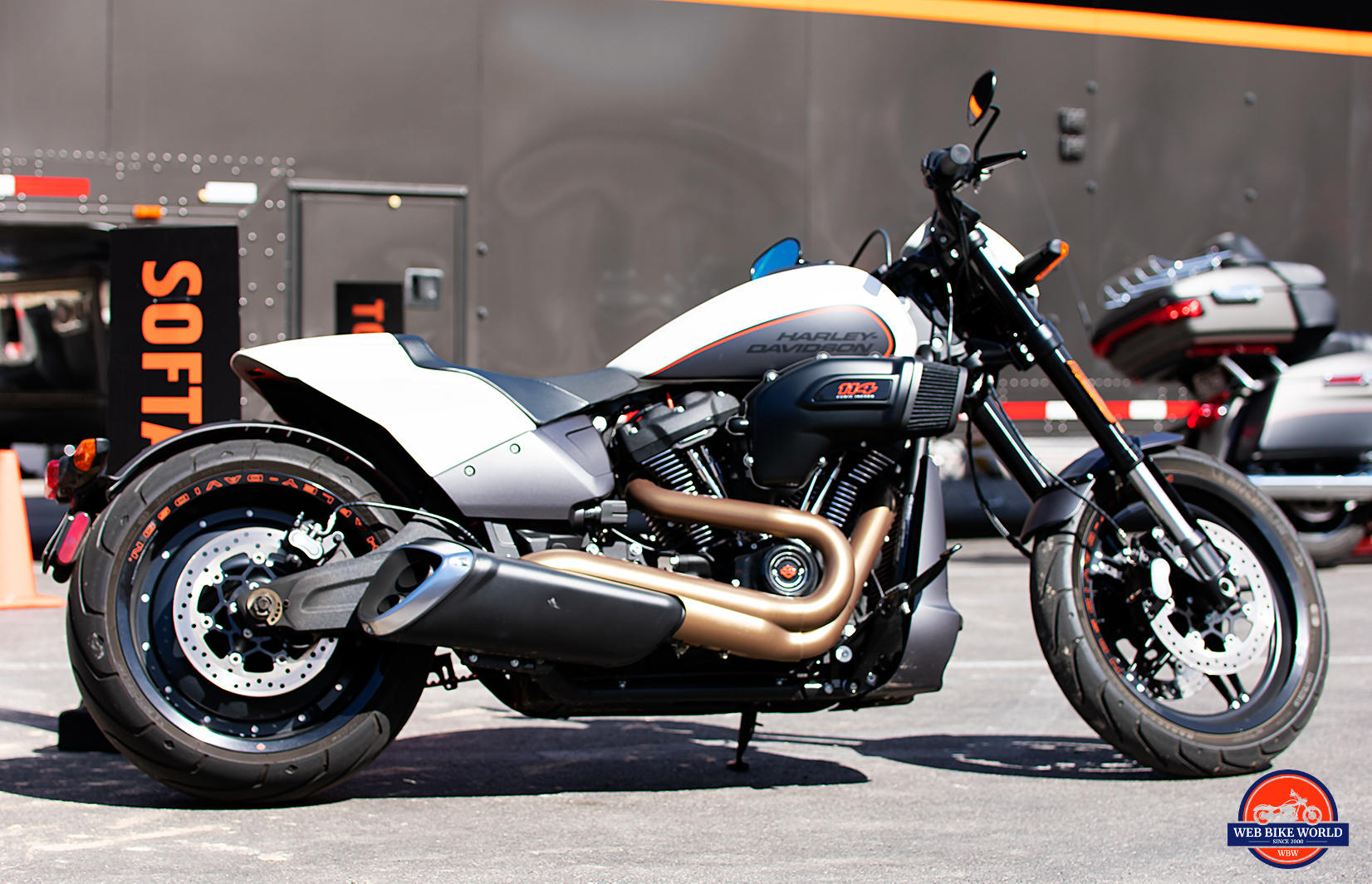 It stands out markedly in amongst the crowd of other demo units from the 2019 Harley lineup.