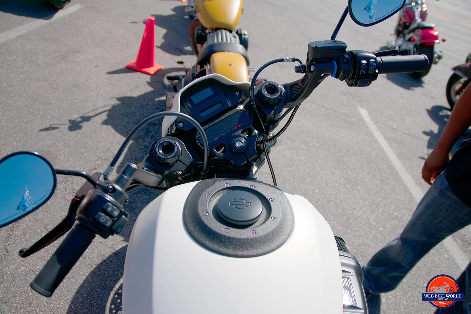 This is a sculpted machine of modern making, but Harley decided to dismissively toss on a pair of standard style mirrors that you can find on any other Softail model?