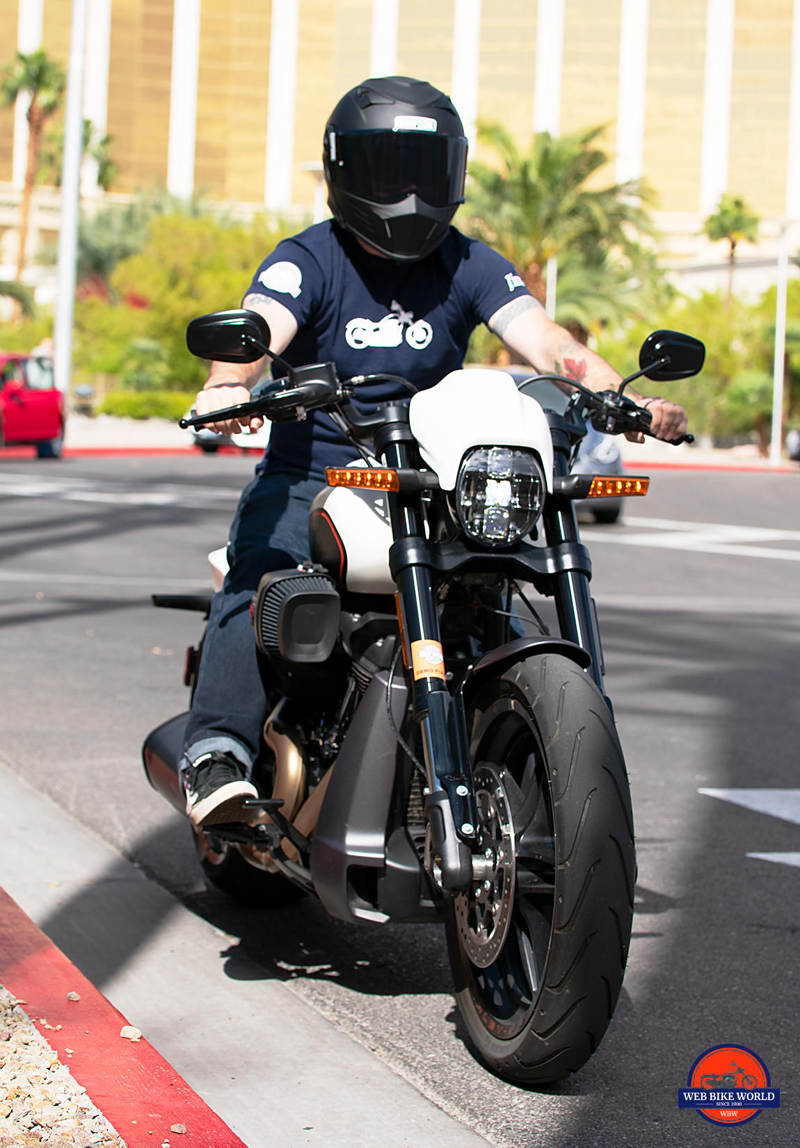 As I mentioned I got to ride the FXDR while attending AimExpo in the beautiful October weather Las Vegas is known for. A motorcycle-centric day of 80 degree temps with bright sunshine beaming down and nary a cloud in the sky to be found framing the scene of me being let loose on Harley’s new muscle bike. Left far behind was my Canadian home where my bikes had been winterized and put into storage due to snow and cold arriving early this year even by our standards.