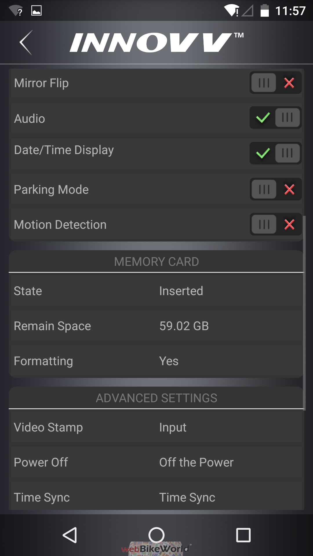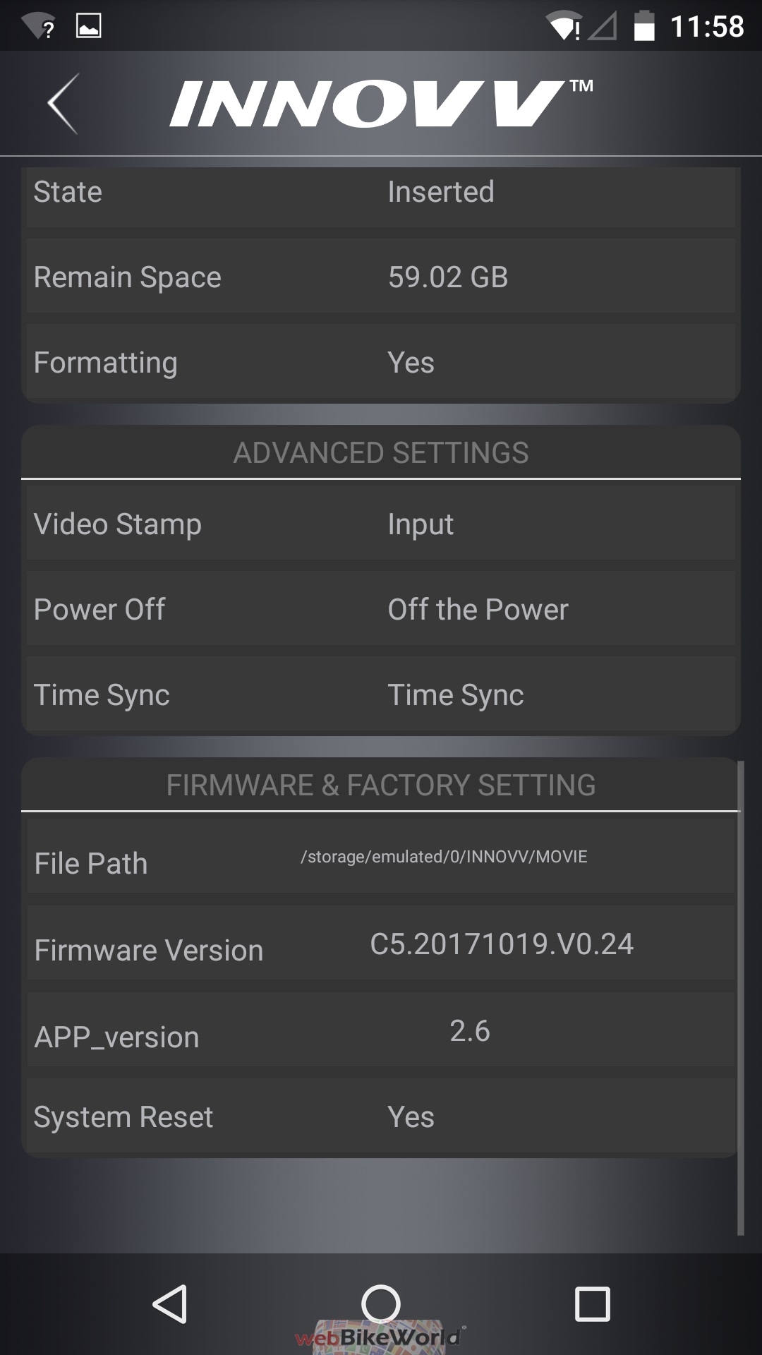 Launch the Innovv app and select Settings and scroll down to the bottom of the page to verify that the latest update is installed. All previous settings should be retained, but it never hurts to verify things…