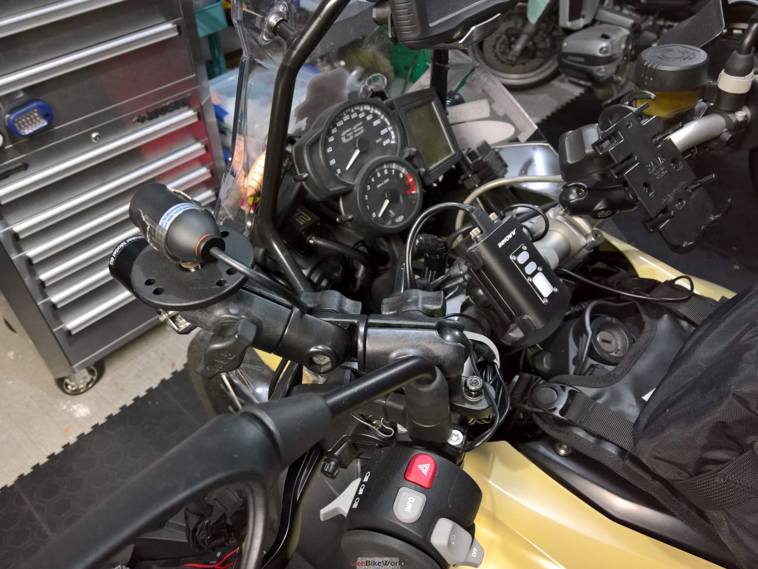An initial outer side wall installation of the module was done on the 2019 F850GSAdv for assessment but was then moved over to the 2018 R1200GS Rallye where it had a temporary home and now a (permanent) location.