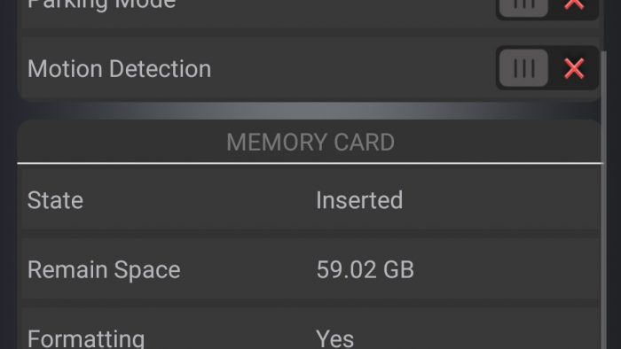 With media inserted, formatting is done automatically (indicated by the Red LED going out and then turning on again) or manually using the app in the ‘Settings’ section – a confirmatory message is displayed once the media is ready; the system reboots as well.